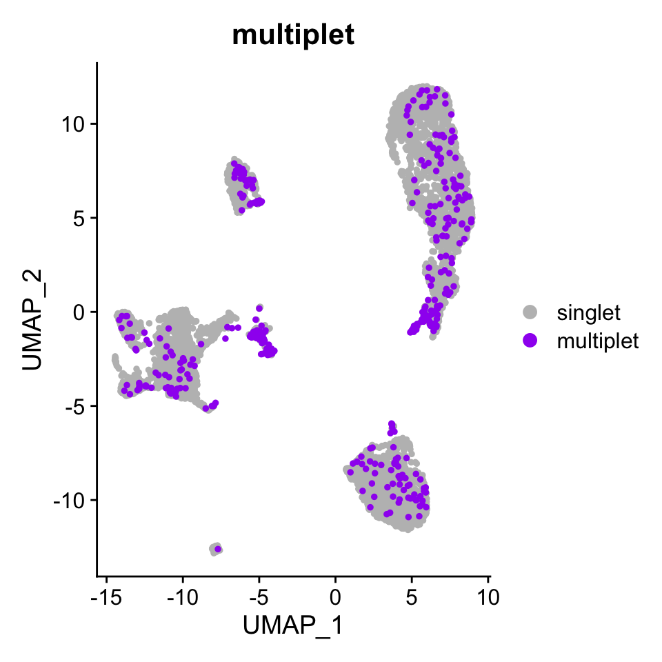 cols = c("singlet" = "grey", "multiplet" = "purple"),