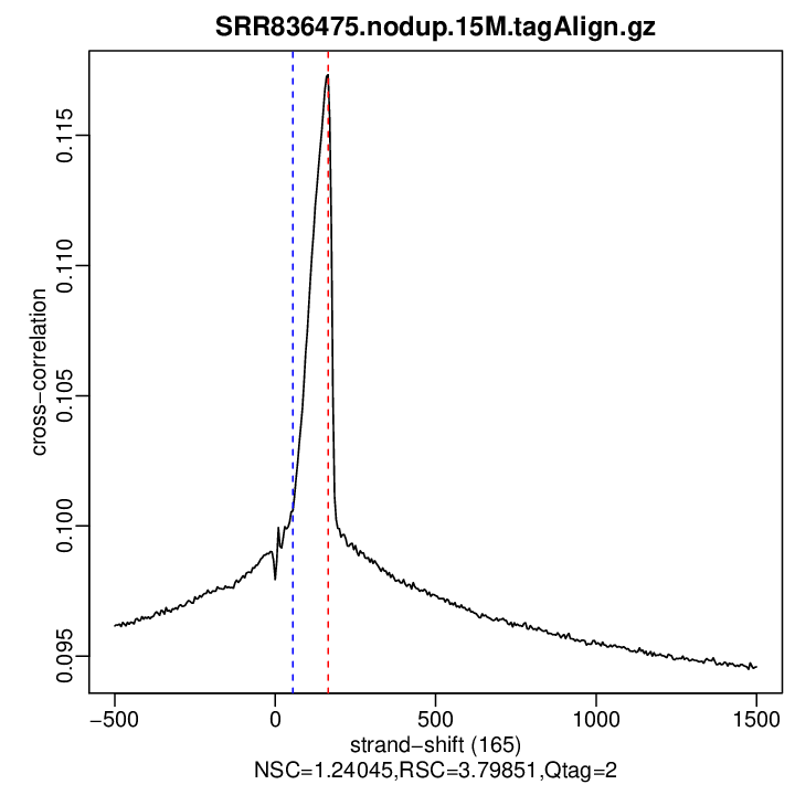 Relative strand cross-correlation coefficient (RSC) = col10 in outFile