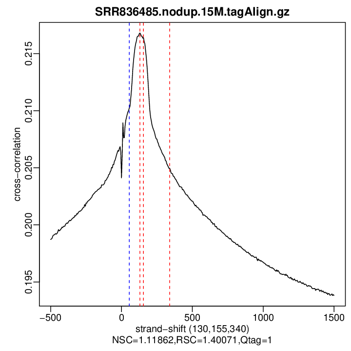 Relative strand cross-correlation coefficient (RSC) = col10 in outFile